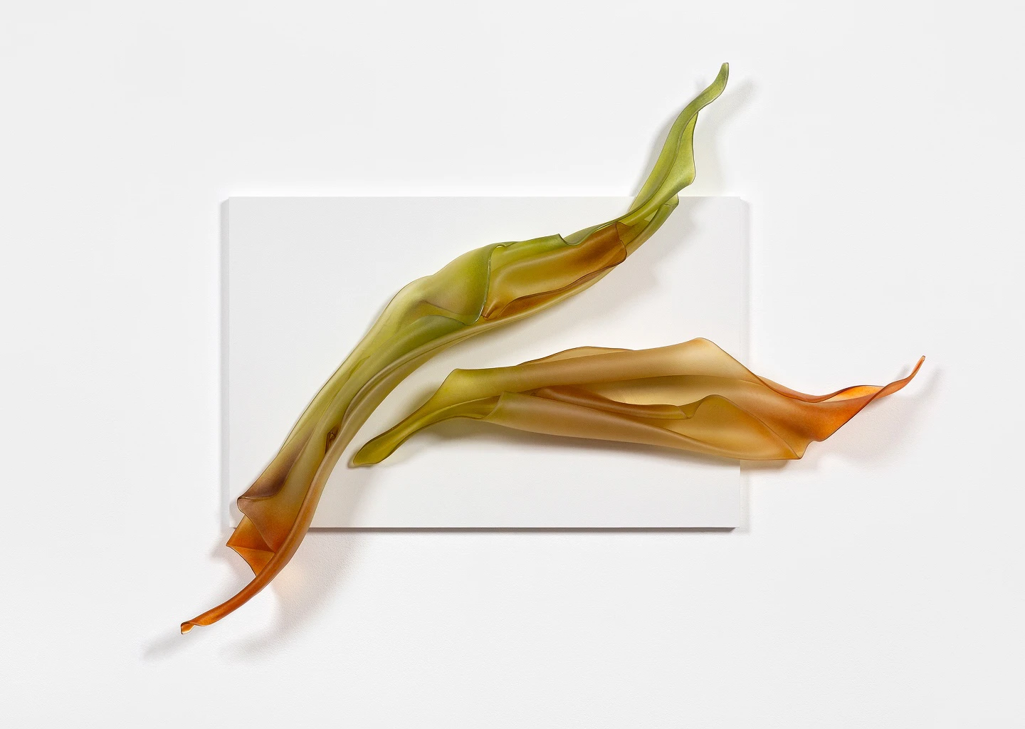 Of gesture and nature 1, 2025, folded glass on wall panel, 740 h x 950 w x 100mm d