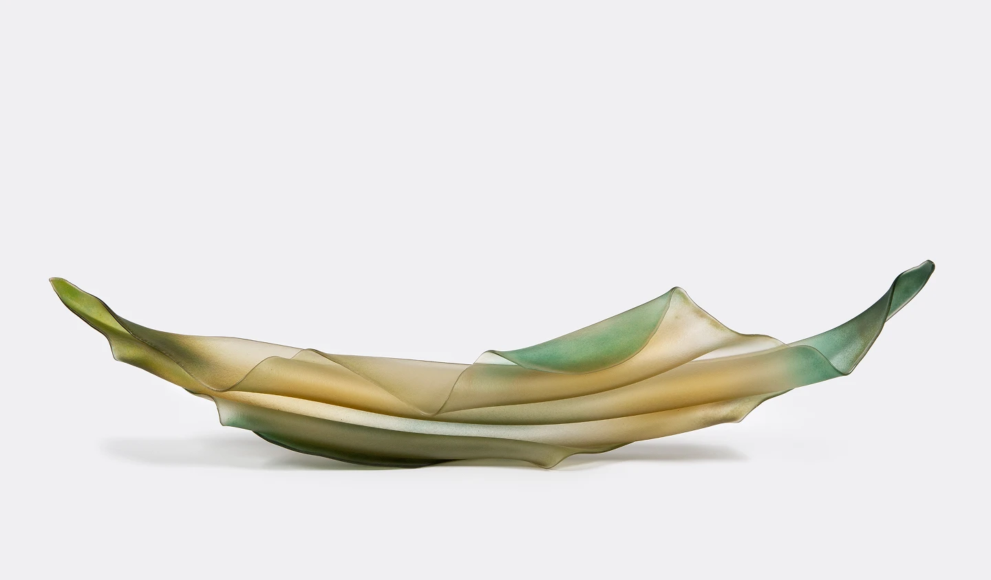 Shaped by the breeze 2, 2025, folded glass sculpture with base, 365 h x 679 w x 250mm d